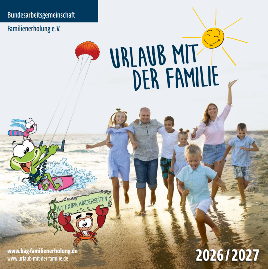 Der Katalog 2026/2027 der Bundesarbeitsgemeinschaft Familienerholung e. V. bietet einen umfassenden Überblick über alle angeschlossenen Familienferienstätten in Deutschland. Die teilnehmenden, zertifizierten Häuser präsentieren ihre individuellen Angebote, ihre Ausstattung sowie vielfältige Aktivitäten rund um einen gelungenen gemeinsamen Familienurlaub.